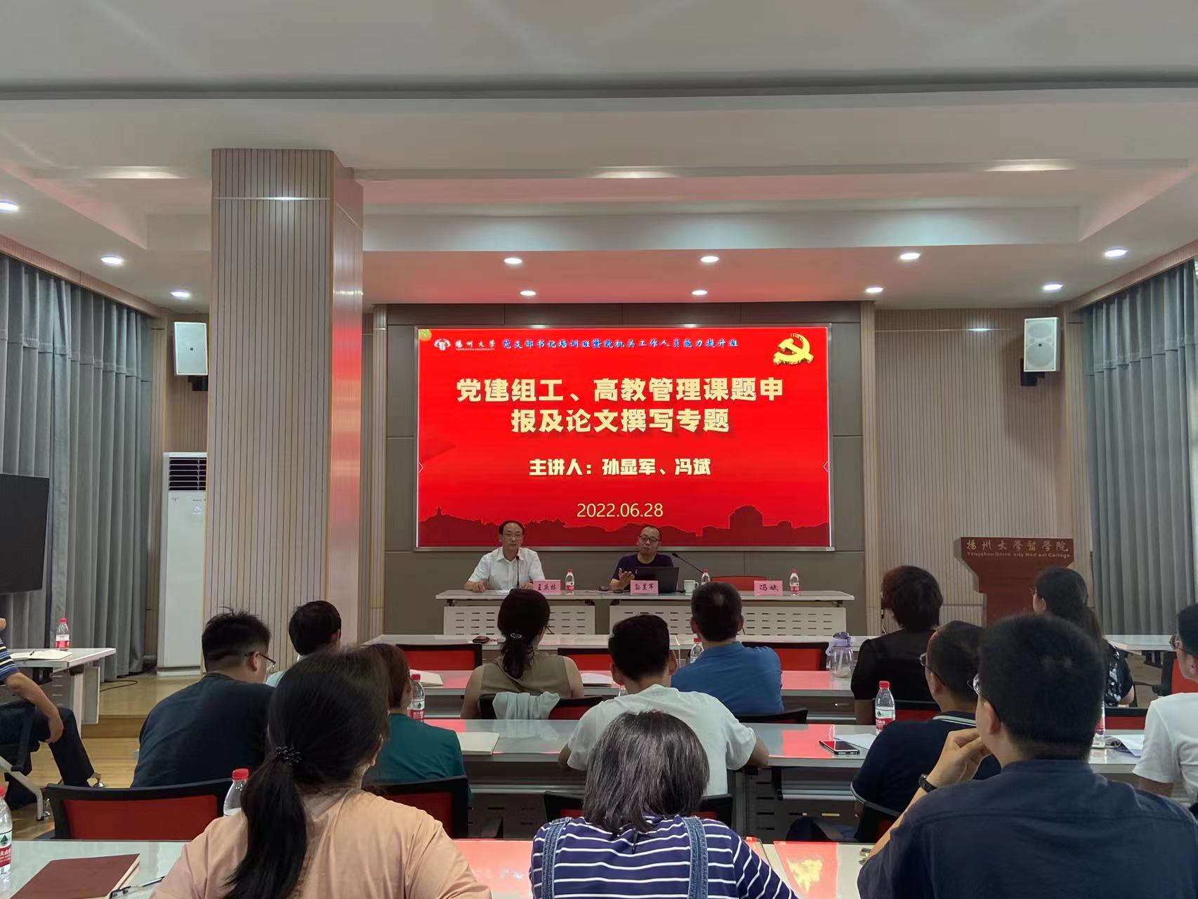 为进一步提高学院党务工作人员和机关工作人员的写作能力和科研水平,2022年6月28日下午,院党委邀请扬州大学学报(高教研究版)常务副主编、编审孙显军教授做客党支部书记培训班暨院机关工作人员能力提升班,为总支书记、支部书记和机关工作人员作《教育教学论文写作:引用与专业阅读》专题讲座。