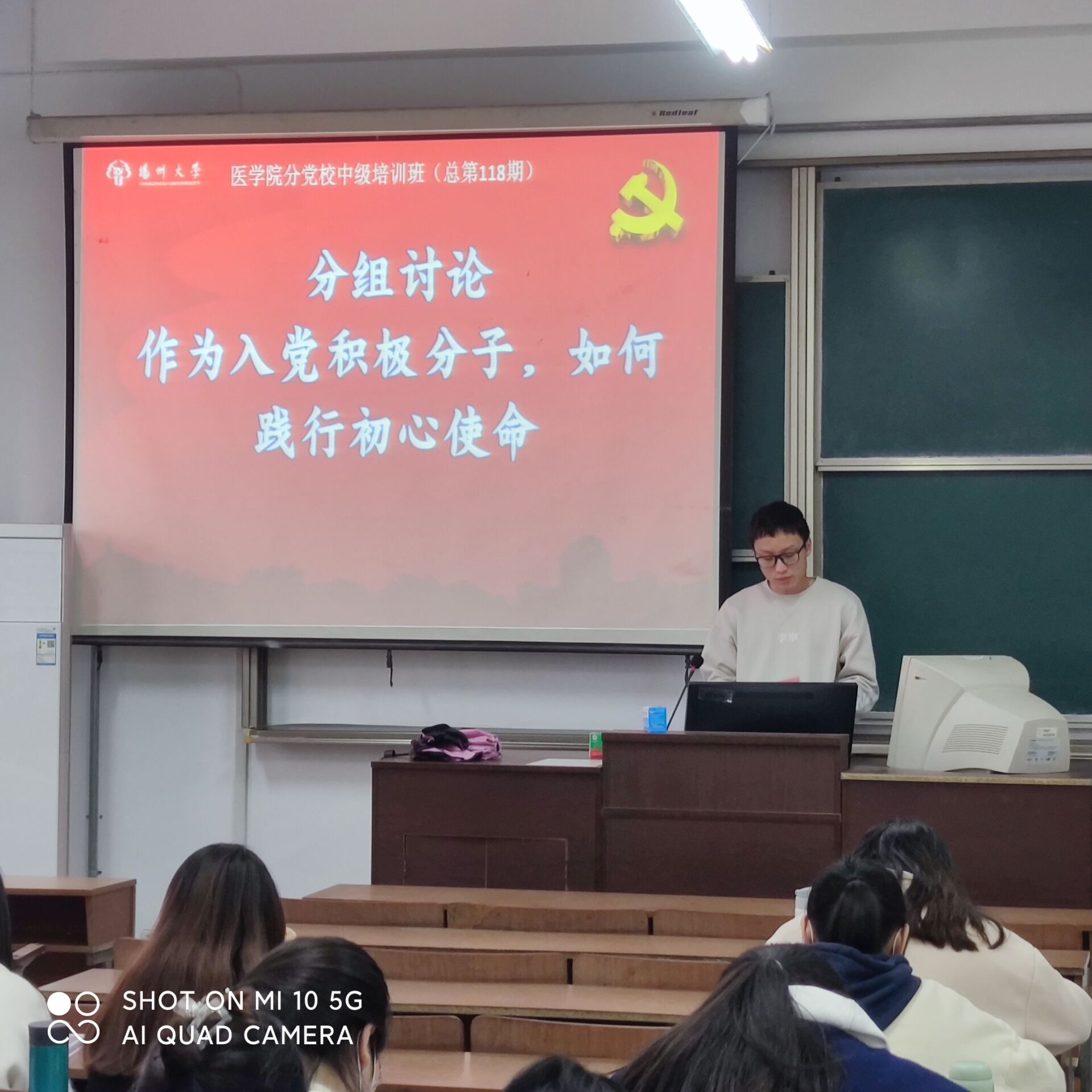 2021年11月13号-21号,医学院分党校举办中级培训班(第118期)。本次培训班内容丰富,形式多样,不仅邀请校院多名专家,就党的历史、党最新理论成果、党章、党的纪律等为学院135位积极分子做专题党课,同时组织学员观看党史纪录片,并展开分组讨论。