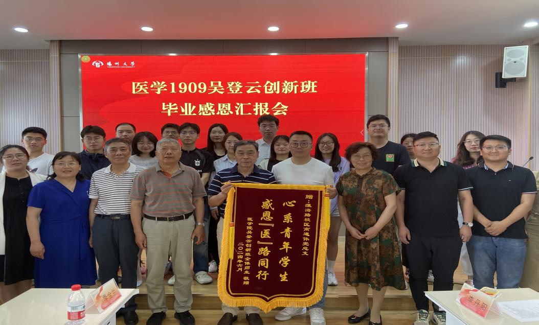又见毕业季,浓情感恩心。6月12日,医学1909吴登云创新班在路北校区19号楼9楼报告厅举办吴登云创新班感恩汇报会。院关工委副主任、淮海路校区离退休党总支书记唐尧,淮海路校区离退休党总支第一党支部书记刘煜、第二党支部书记季全兰、第三党支部书记华进甫,院关工委主任、党委副书记左红梅,医学1909班班主任、副院长颜丙春出席活动,院关工委秘书长、团委书记(学工办主任)李丹阳老师主持,医学1909班学生代表参加活动。