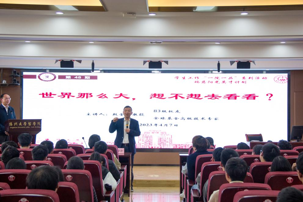 47日下午,学院在江阳路北校区5号楼401报告厅举办第48期惠生讲堂,院党委书记王庆林主持活动。本期惠生讲堂邀请了我院83级校友赵金扣教授作为分享嘉宾,院长钱莉、党委副书记左红梅、团委书记许金鑫出席活动。