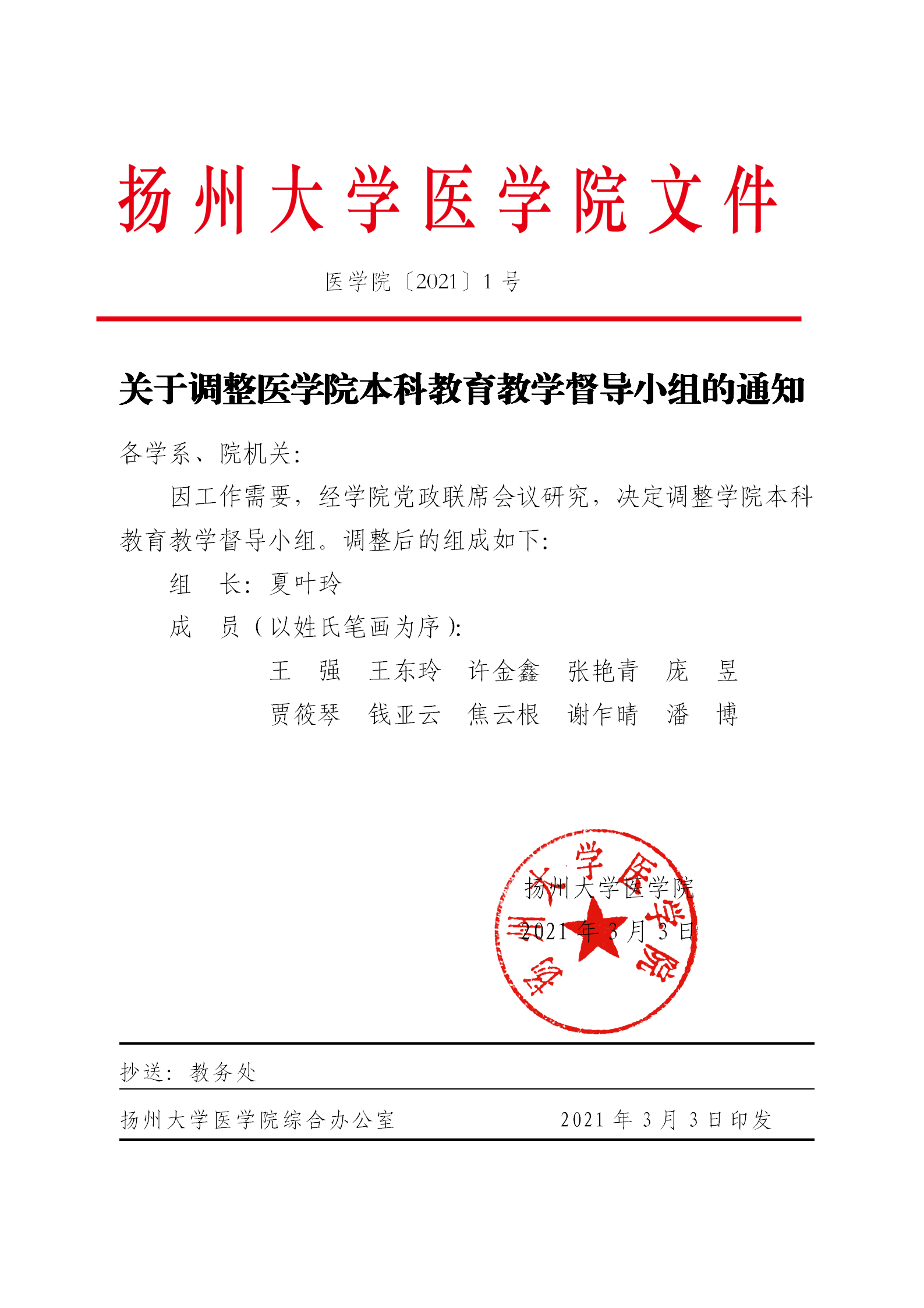 关于调整医学院本科教育教学督导小组的通知.pdf