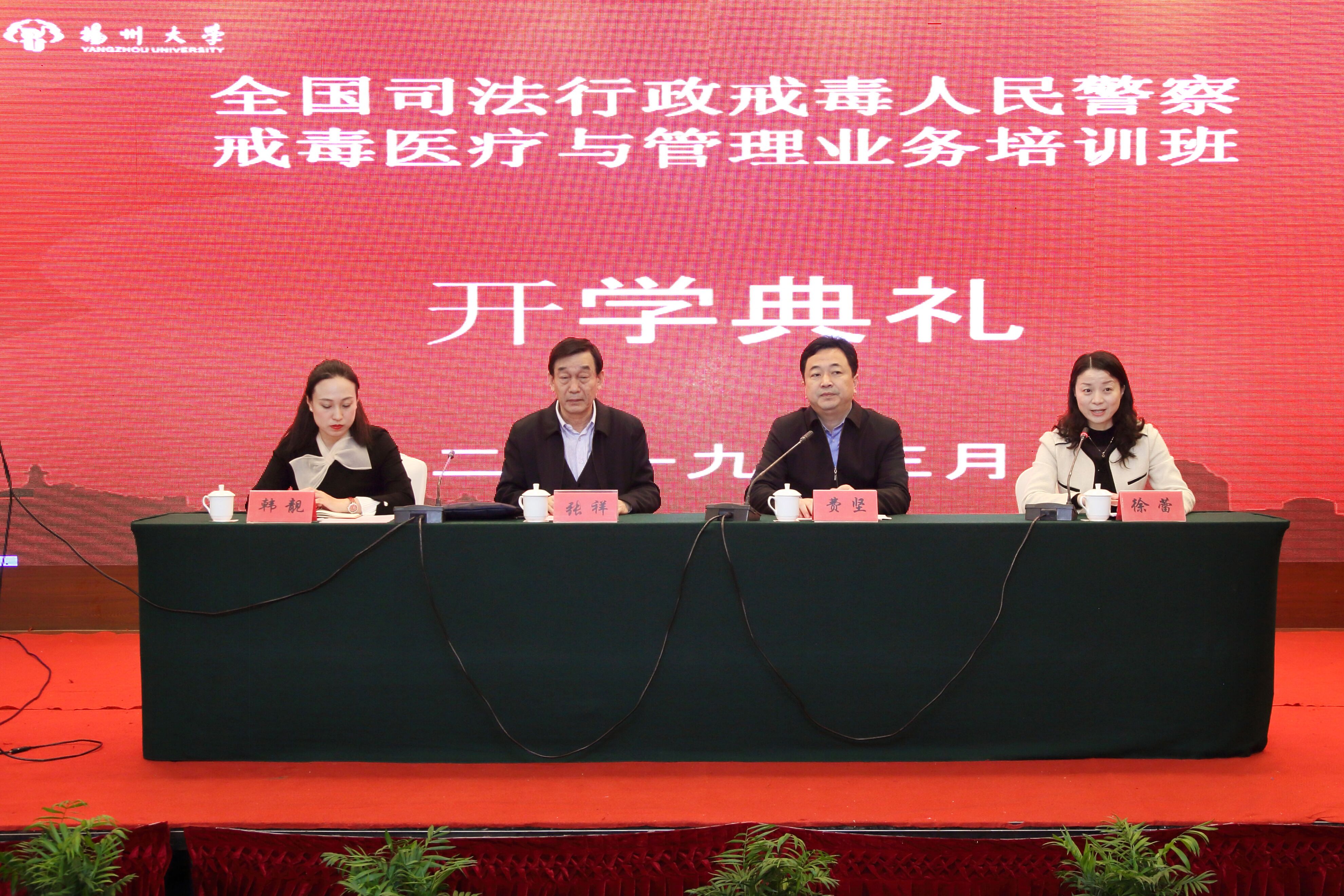 3月21日上午,全国司法行政戒毒人民警察戒毒医疗与管理业务培训班在扬州举行。中国司法行政戒毒工作协会党组副书记、副会长张祥同志,扬州大学党委常委、副校长费坚同志,中国司法行政戒毒工作协会培训部主任韩靓同志,扬州大学医学院党委书记徐蕾同志等领导出席开班活动。会议由徐蕾书记主持,来自全国25个省、市、自治区戒毒系统104名参加本次培训的干警出席开班活动。