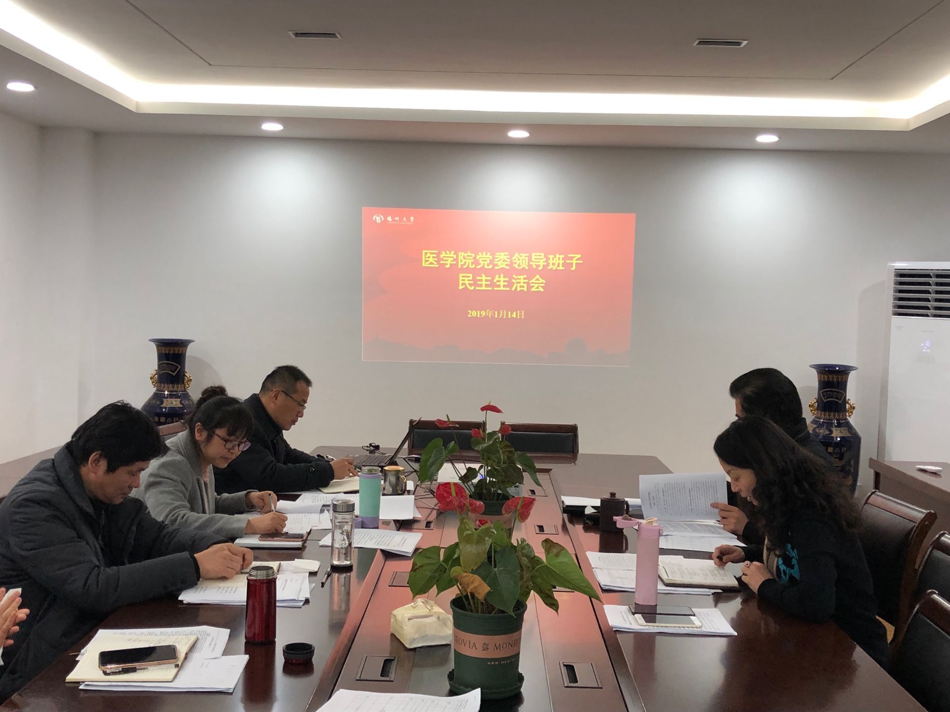 1月14日,学院召开2018年度党委领导班子民主生活会。会议由党委书记徐蕾主持,全体党委领导班子成员参加,党外处级干部列席。