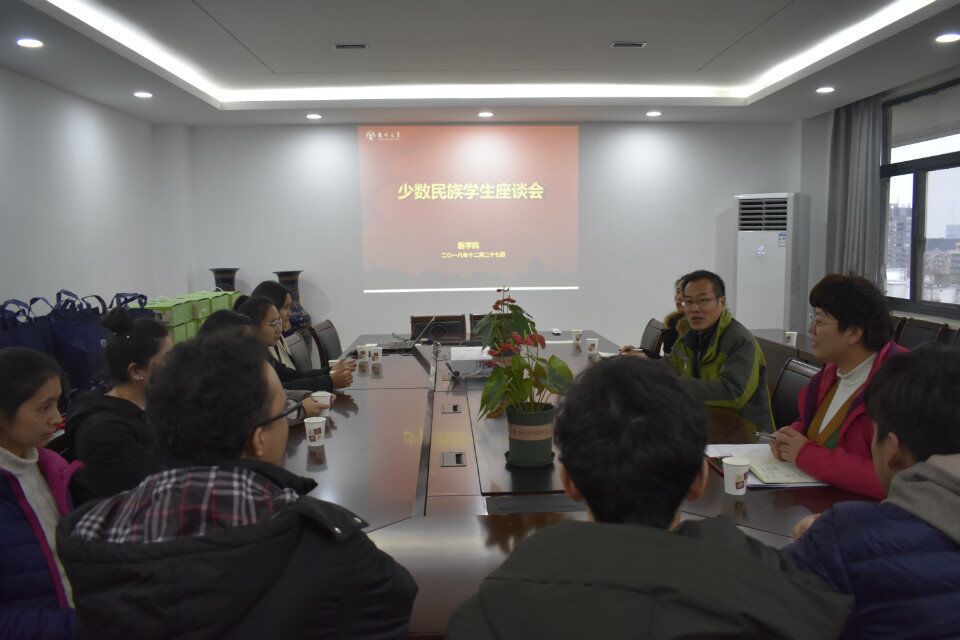 12月27日下午4点,医学院于路北校区19号楼808室举行少数民族学生座谈会。出席本次座谈会的领导有院党委副书记陈轶群老师、团委书记许金鑫老师、辅导员徐怡老师以及学院各年级少数民族学生代表。