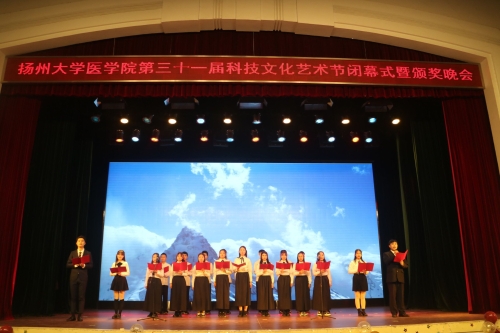 颁奖典礼上,校院领导为我院一年来获得奖项的师生颁奖。闭幕式晚会以“传承红色记忆,致敬医梦青春”为主题,共分为“回望风华”“礼赞今朝”和“筑梦未来”三个篇章,通过歌舞、朗诵、小品等多种形式,歌颂了医学院师生在学术科技、志愿实践、自立自强、文体艺术等方面向上向善、催人奋进的感人事迹和精神品格,展现了全院师生团结奋发的活力与风采。