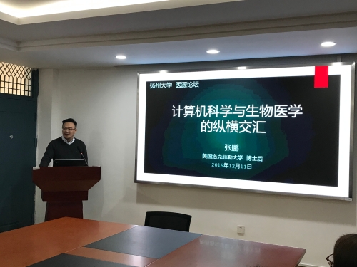 12月11日下午,美国洛克菲勒大学人类传染病基因遗传实验室博士后人员张鹏博士来我院做了一场题为“计算机科学与生物医学的纵横交汇”的讲座。医学院副院长郑英教授主持了本次报告。