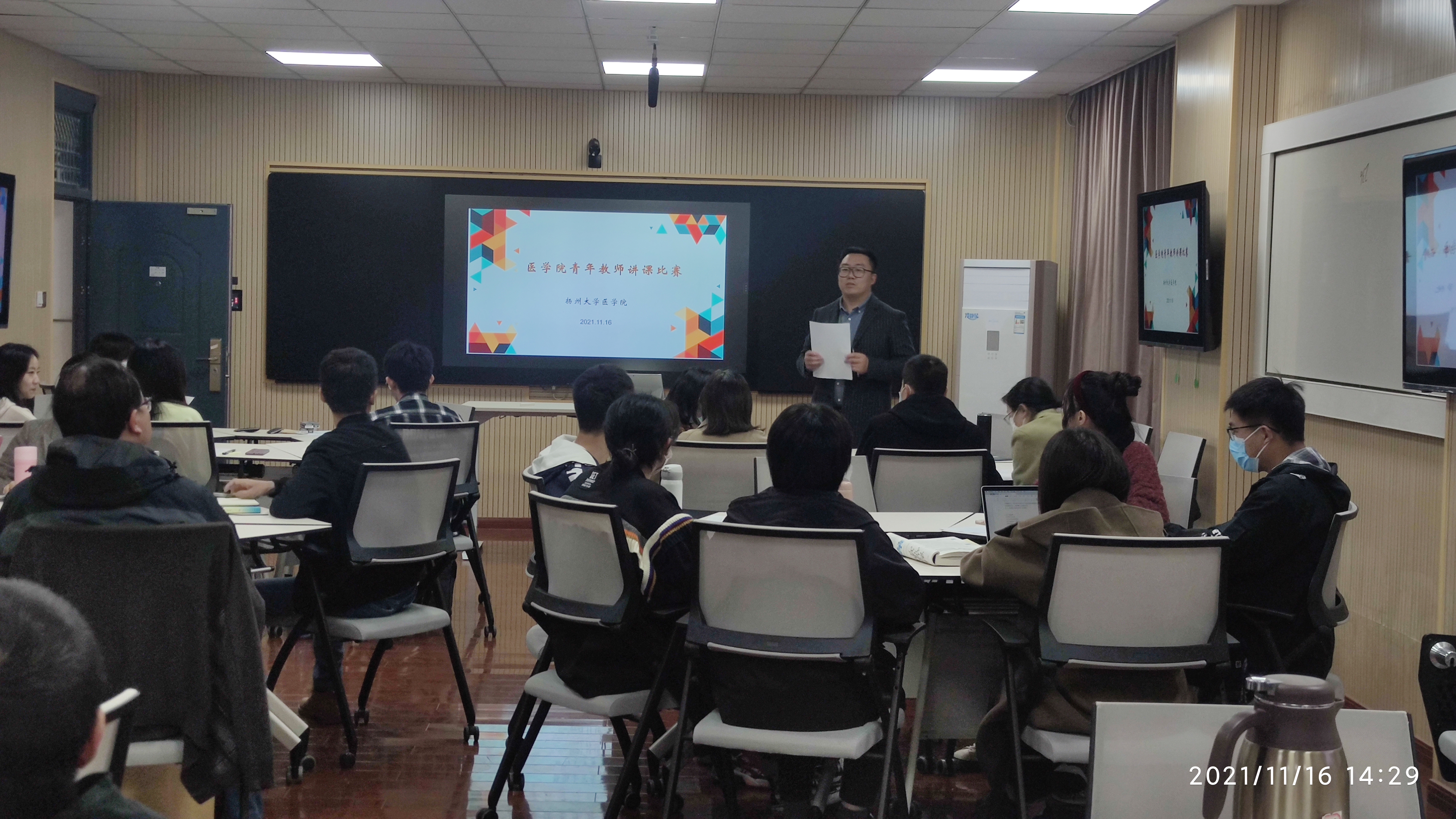 11月16日下午,医学院在江阳路北校区19号楼714智慧教室举办青年教师授课展示活动,本次活动共有9名青年教师报名参加,副院长颜丙春老师主持本次活动。活动邀请了贾筱琴老师、张艳青老师、奚菊群老师、徐海荣老师及10名本科生作为现场评委。学院10余名青年教师在现场进行了观摩。