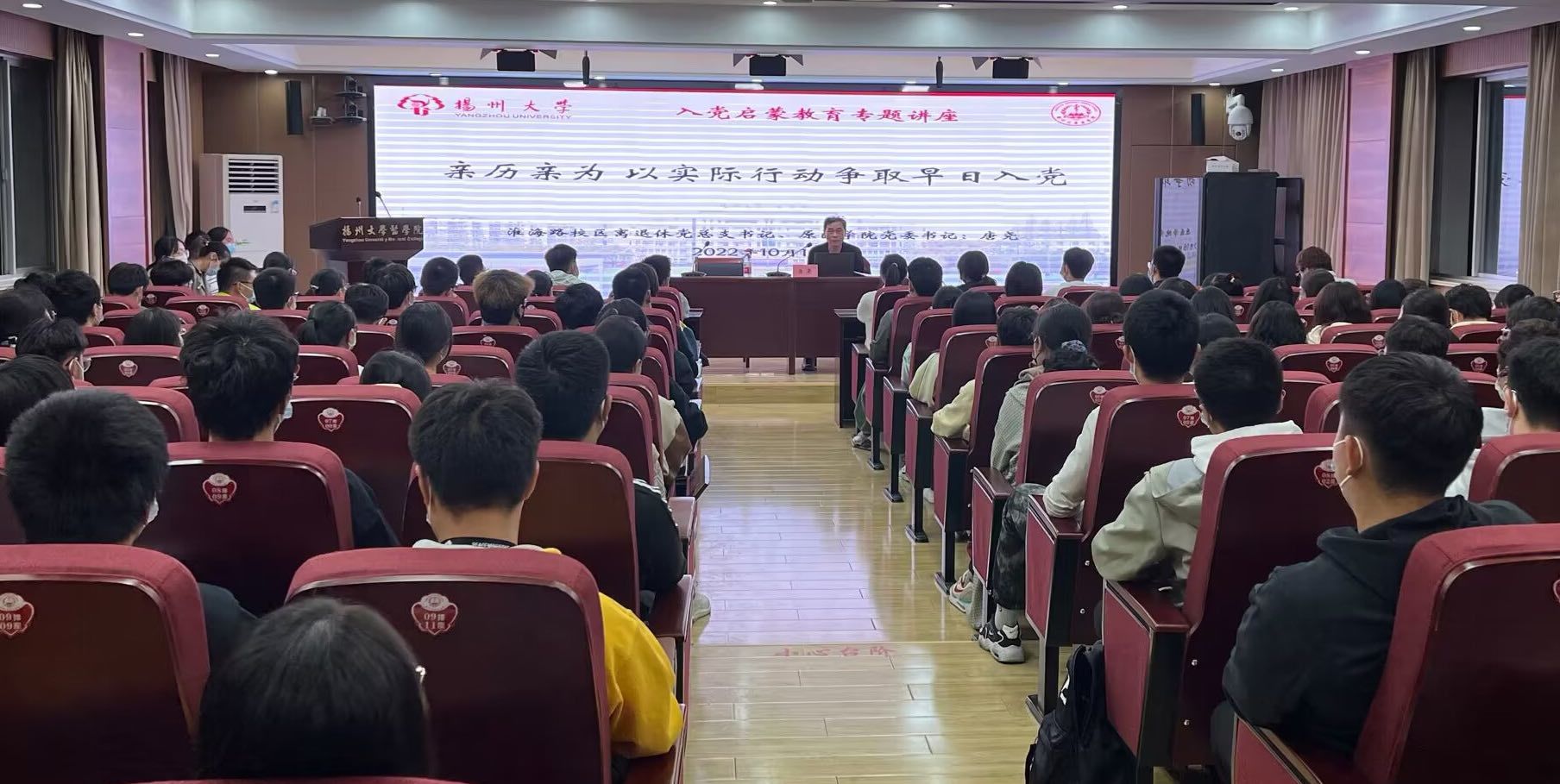 唐尧老师向同学们介绍了有关自己上山下乡,参加高考,就读复旦大学,任职扬州大学等经历,强调了实践的重要性,也让同学们仿佛亲身感受到了作为一名党员身上所担负的重大责任。