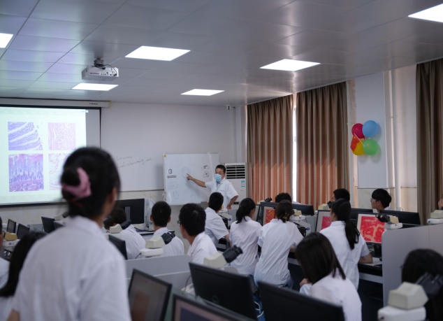 组胚教研室的岳海源老师为新生讲解了显微镜的使用,切片的观察等实验室的基本操作知识,向同学们展示了几种组织的典型切片,并简单介绍了各种组织的功能及常见疾病。