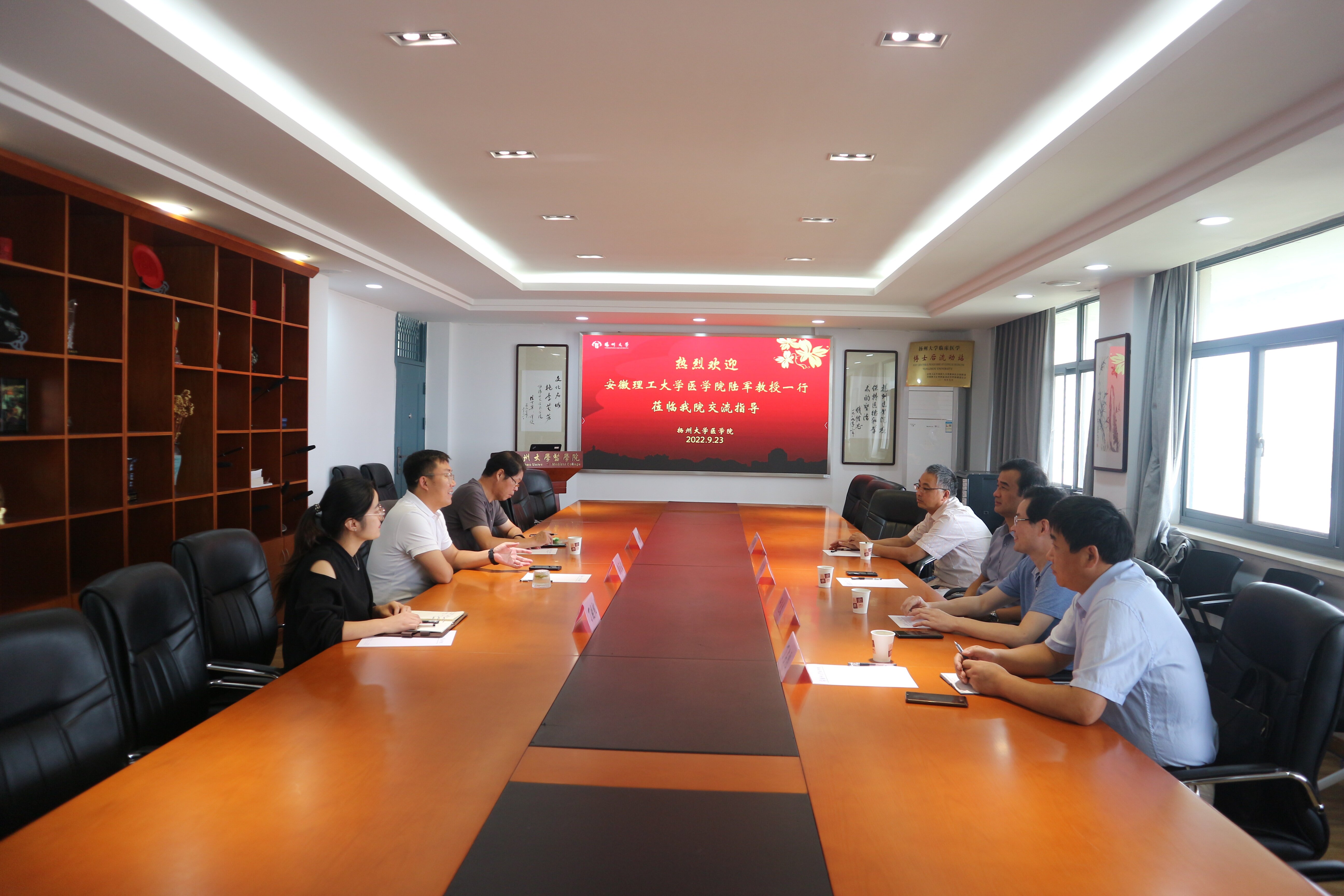 9月23日上午,安徽理工大学医学院副院长陆军等一行4人来我院考察交流,我院副院长颜丙春、基础医学与医学技术系副主任张艳青、解剖教研室主任吴洪海及本科教学办公室等老师参加了交流会。
