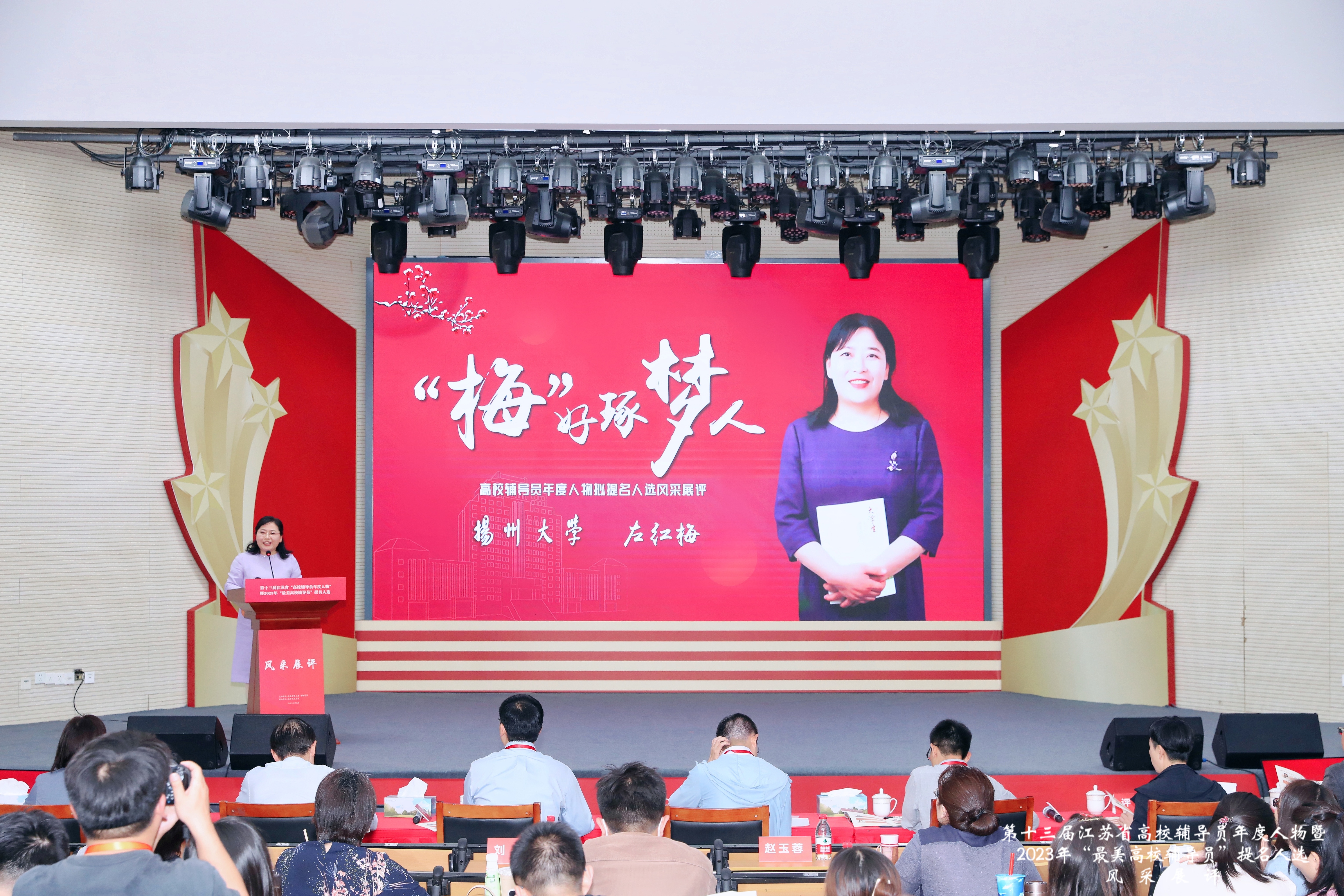 此次推选按照事迹感人、表现突出、影响力大、示范性强的标准,坚持公平公正、培优选优的原则,经学校推荐、材料审核、专家初评、风采展示、结果公示等流程。我院辅导员左红梅老师凭借扎实有效的先进事迹和动人心弦的现场展评,在39名提名人选中以第四名的好成绩脱颖而出,荣获2023年江苏省“最美高校辅导员”称号。