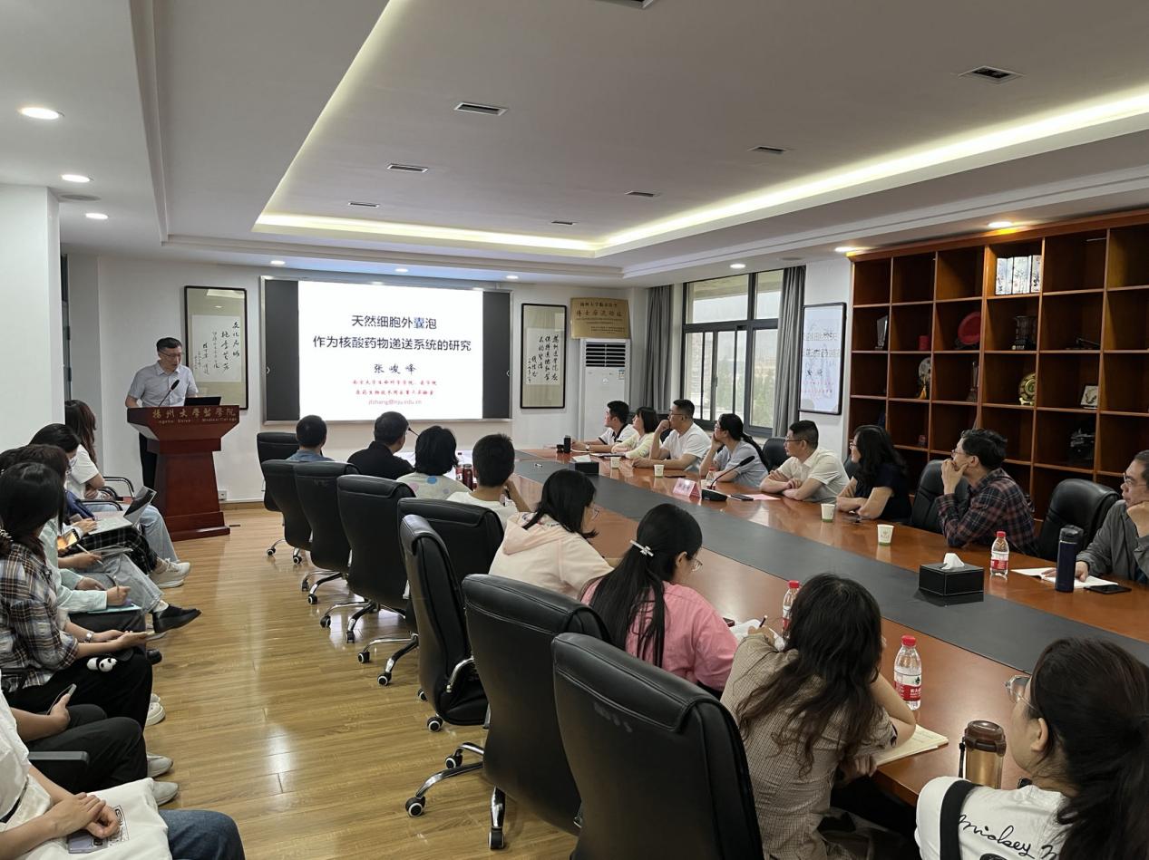 6月10日下午,南京大学张峻峰教授为我院师生作“医源论坛”学术报告,报告题目为《天然细胞外囊泡作为核酸药物递送系统的研究》,报告由扬州大学纪委书记邱庆峰教授主持,医学院师生参加了报告会。