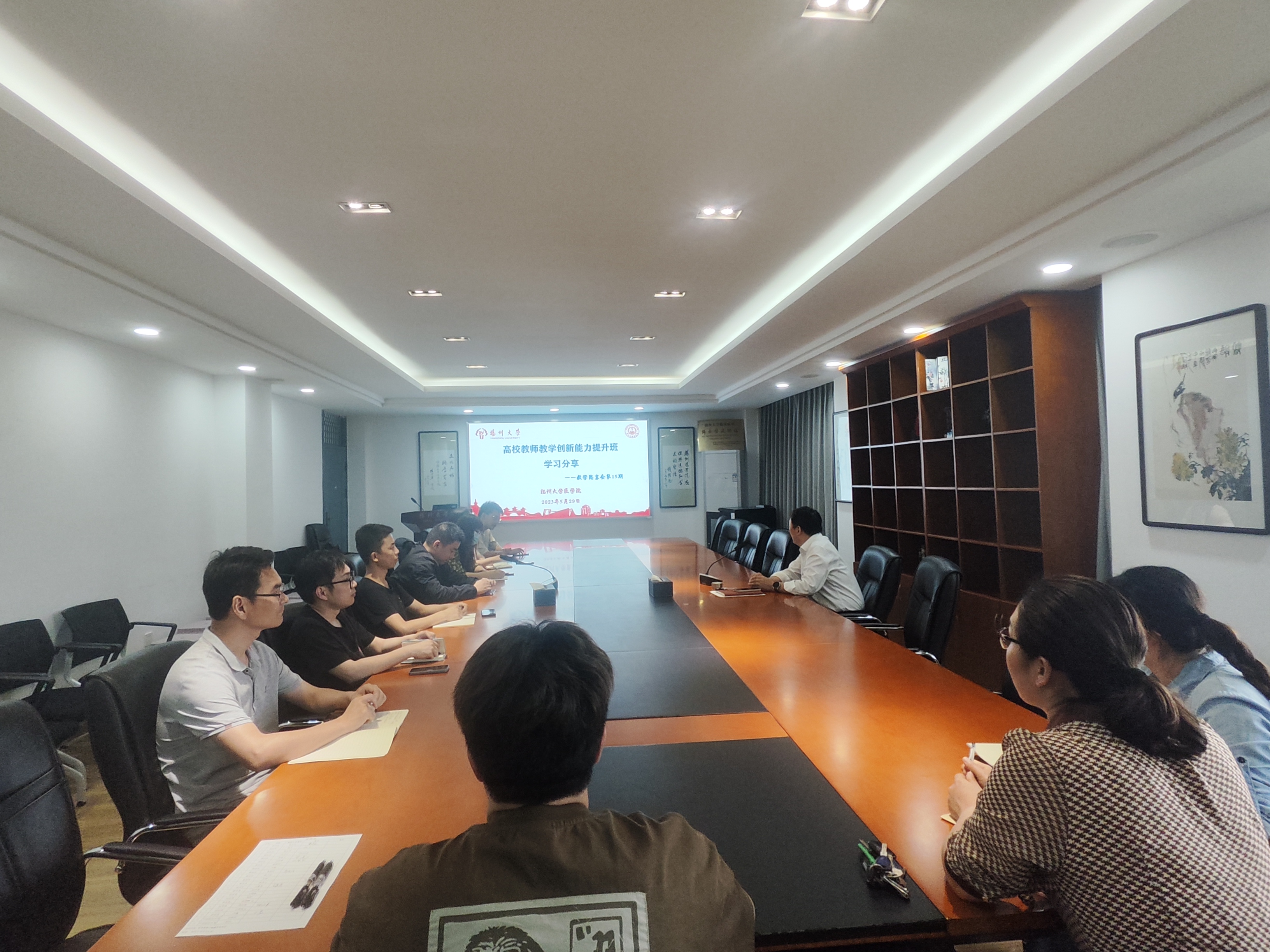活动中李老师向大家分享了上月参加南京大学“高校教师教学创新能力提升专题研修班”的学习内容。他从“课堂互动与教学表达”、“第一堂课很重要”、“肢体语言的魅力”、“授课比赛”等方面展示了学习成果,同时总结了学习心得与体会。李老师指出,教学的核心是以学生为中心,教学改革就是要努力地研究自己、提升自我。活动中,大家也就新教师如何从自身做起提升教学能力进行了讨论。