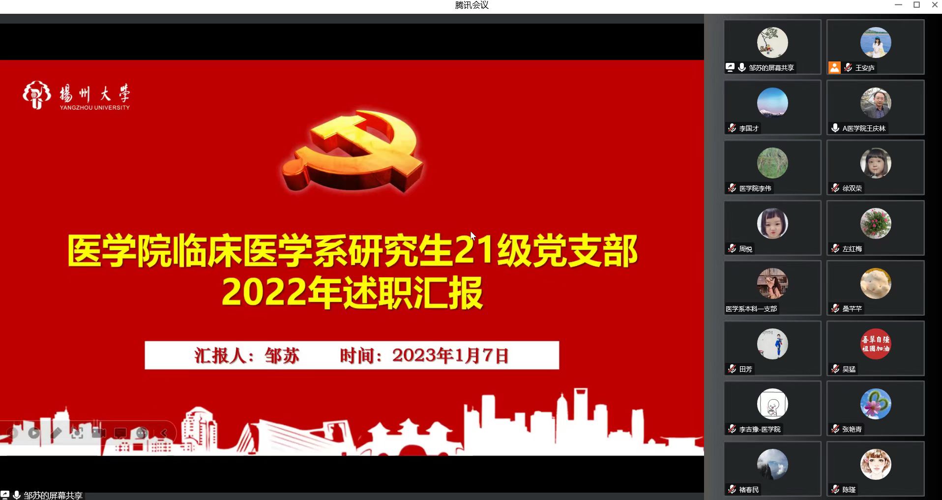 2023年1月7日,学院召开党总支、党支部书记述职评议会。会议由院党委书记王庆林主持,党委副书记左红梅,副院长李伟、颜丙春和全体党总支、党支部书记参加。