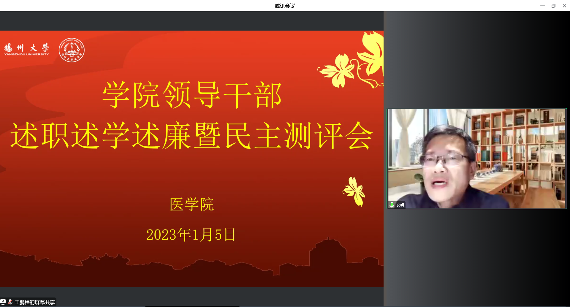 2023年1月5日,学院召开院领导干部述职述学述廉暨民主测评会。校党委常委、副校长赵文明出席了本次会议。会议由院党委书记王庆林主持,医学院、转化医学研究院全体教职员工参加。