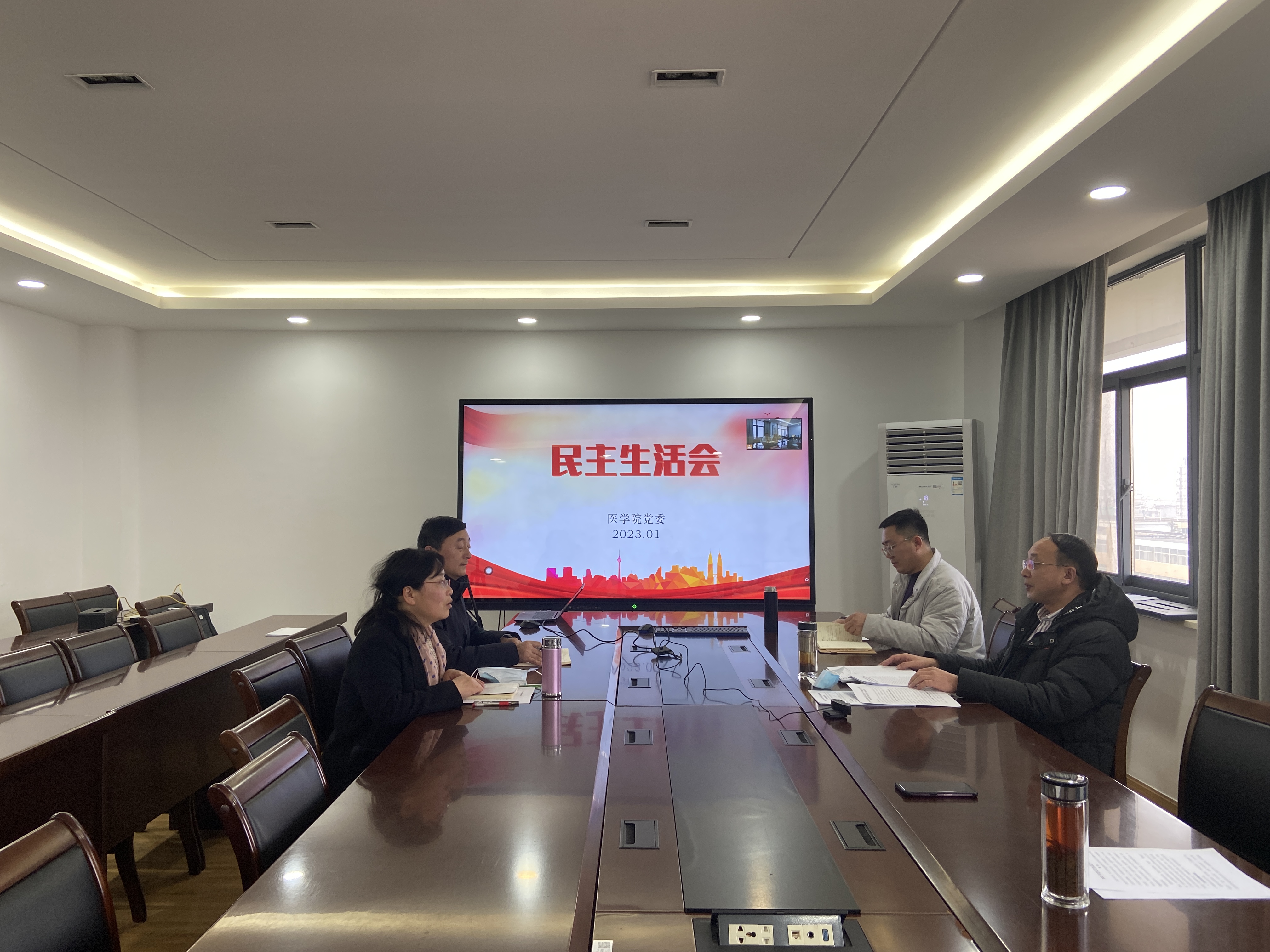2023年1月5日下午,学院党委召开民主生活会,以全面贯彻习近平新时代中国特色社会主义思想,深刻领悟“两个确立”的决定性意义,增强“四个意识”、坚定“四个自信”、做到“两个维护”,团结带领党员干部群众以奋发有为的精神贯彻落实党的二十大作出的重大决策部署为主题,联系工作实际,查摆不足,进行党性分析,开展批评和自我批评。会议由院党委书记王庆林主持,院党委领导班子全体成员参加。