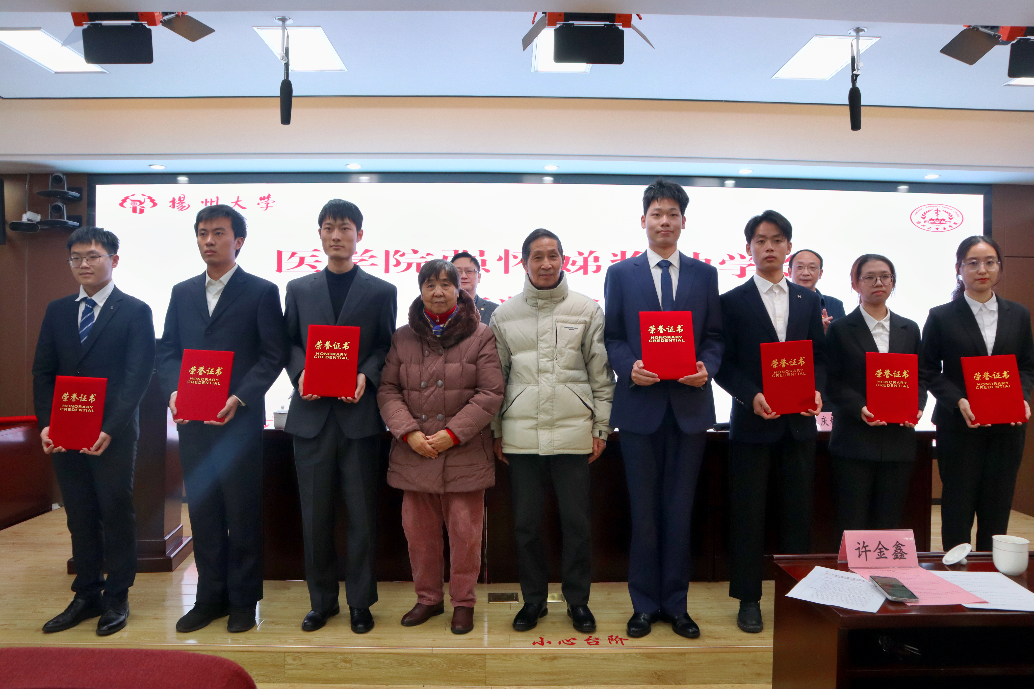 在全校上下深入学习宣传贯彻党的二十大精神和学校第四次党代会精神之际,我院隆重举办了扬州大学医学院“强怀娣奖助学金”颁奖典礼。“强怀娣奖助学金”冠名者、我院退休教师强怀娣,强怀娣老师爱人、我校原统战部副部长戴占军,校对外联络办公室、扬州大学教育发展基金会办公室主任陈克勤,院党委书记王庆林,院团委书记许金鑫出席典礼,院党委副书记左红梅主持活动。