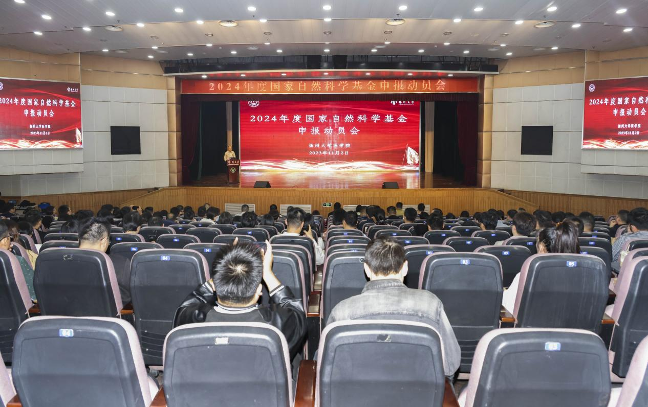 近日,学院召开2024年度国家自然科学基金申报动员会,全面部署2024年国家自然科学基金申报工作。副校长赵文明、副校长龚卫娟、科技处处长刘芳、医学院、护理学院及扬州大学附属医院等39家单位分管科研院长、科研处(科教处)长、拟申报2024年度国家自然科学基金项目全体教师共260余人参加会议。医学院党委书记王庆林主持会议。