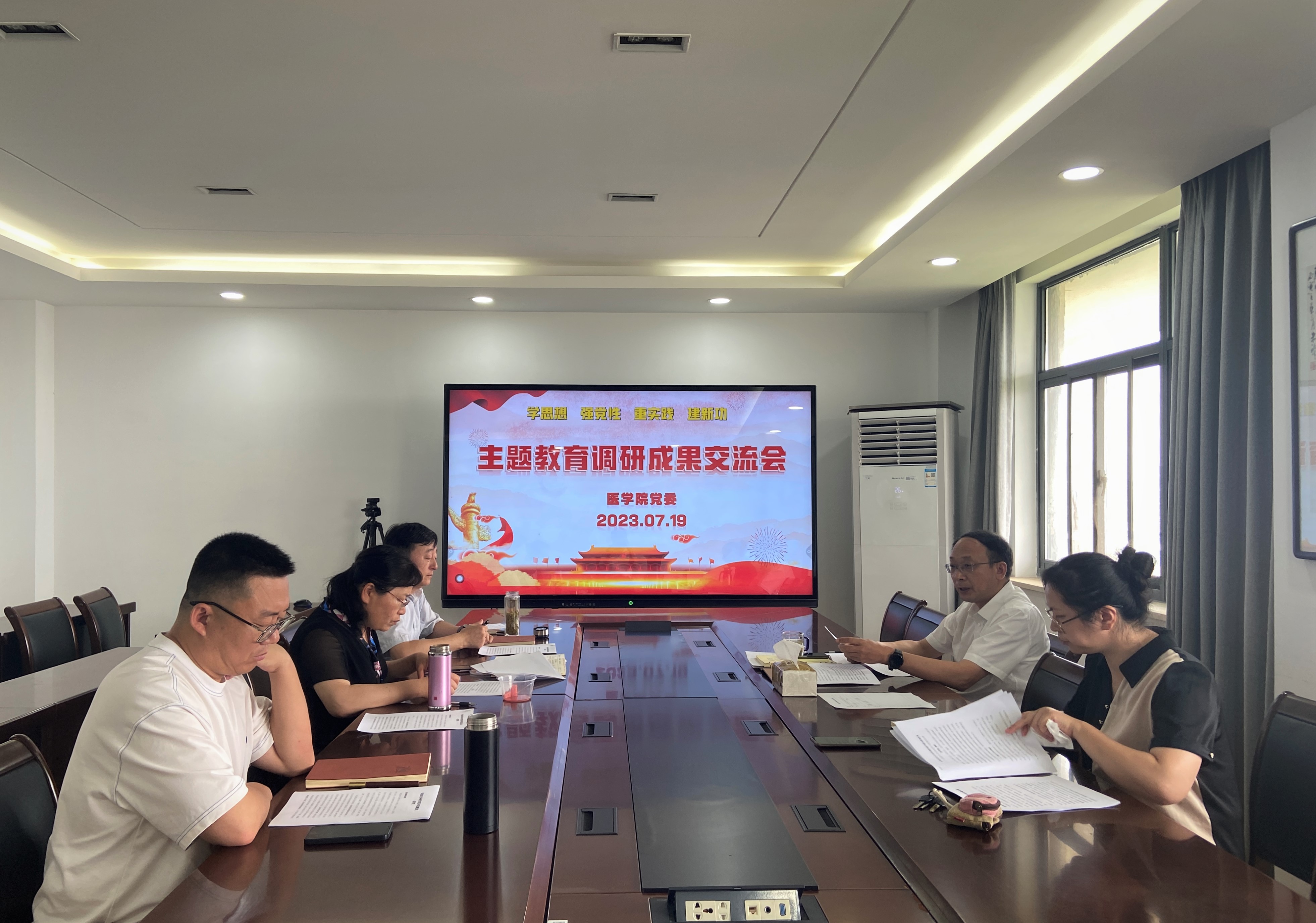 7月19日,医学院在路北校区19号楼808会议室举行学习贯彻习近平新时代中国特色社会主义思想主题教育调查研究成果交流会,院领导班子成员紧扣调研成果,深入交流研讨、厘清问题表现、深刻剖析根源,集思广益研究解决问题的对策措施,积极推动主题教育走深走实。