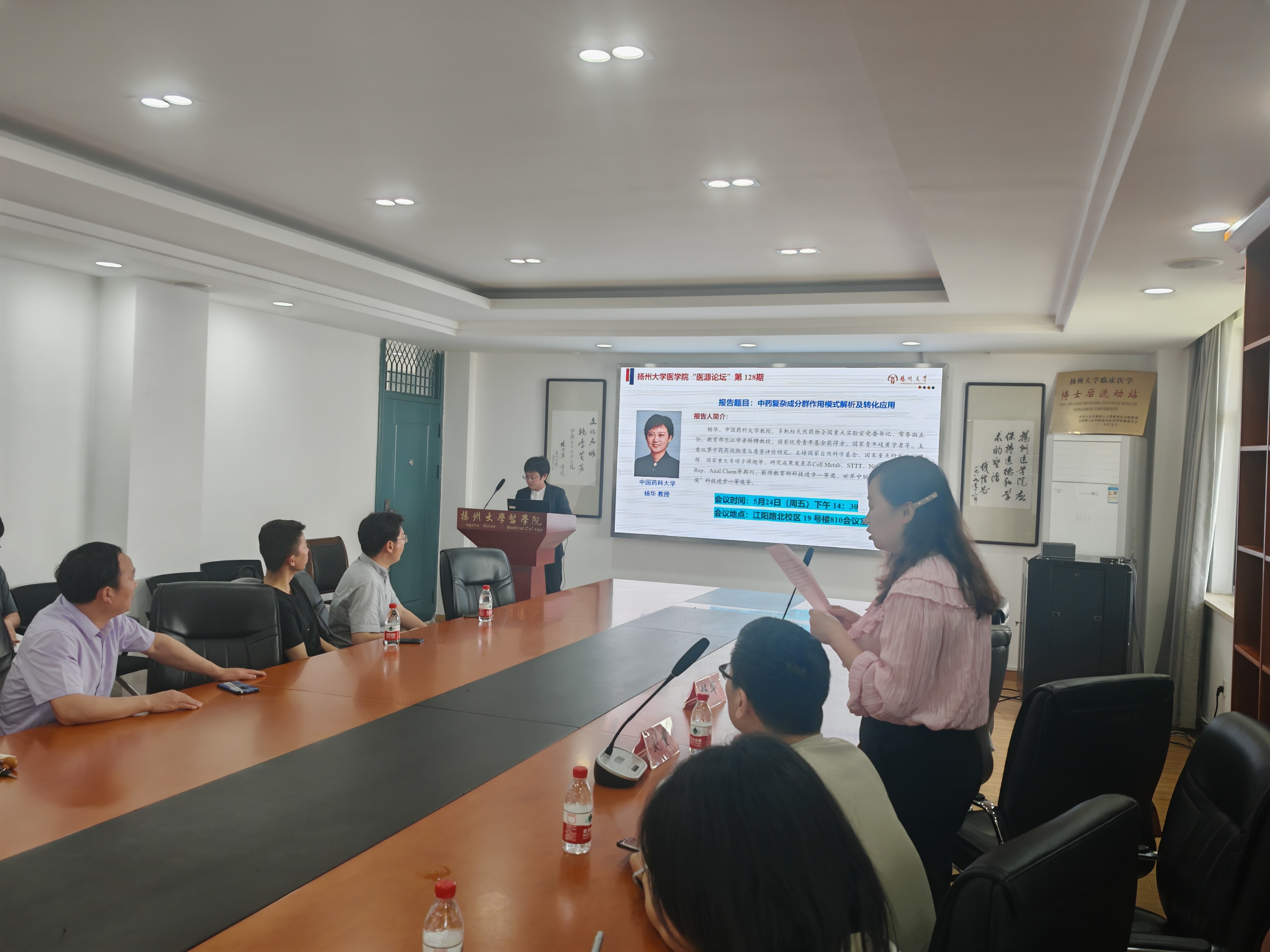 5月24日,教育部长江学者特聘教授、国家优秀青年基金获得者、国家青年岐黄学者,中国药科大学多靶标天然药物全国重点实验室党委书记和常务副主任杨华教授在“医源论坛”作题为“中药复杂成分群作用模式解析及转化应用”的学术报告,报告由药学系党总支书记刘量教授主持,医学院师生参加了报告会。
