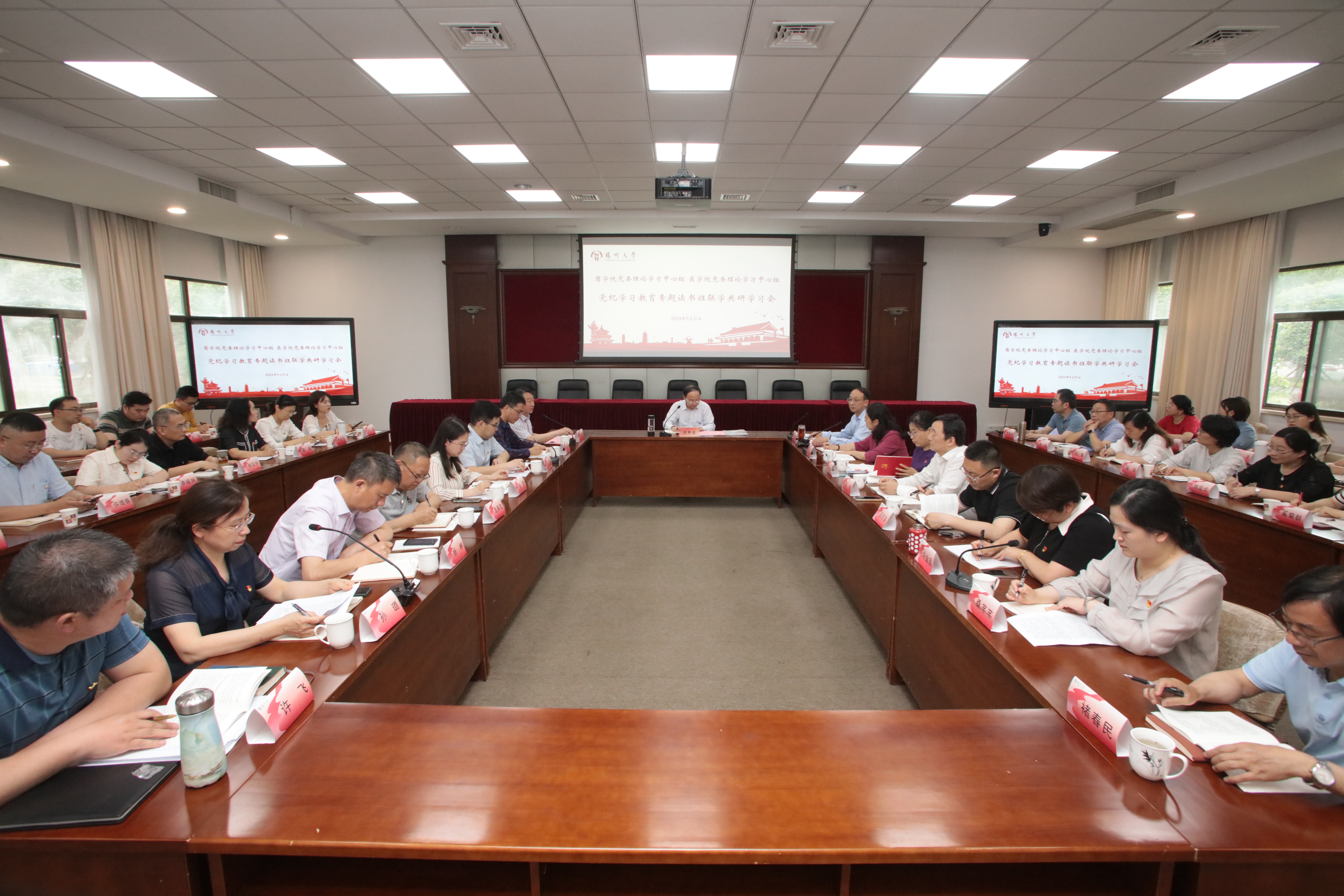 5月21日下午,医学院、商学院党委理论学习中心组党纪学习教育专题读书班在荷花池校区行政楼一楼报告厅举行联学共研学习会。校党委书记焦新安出席会议巡学旁听。