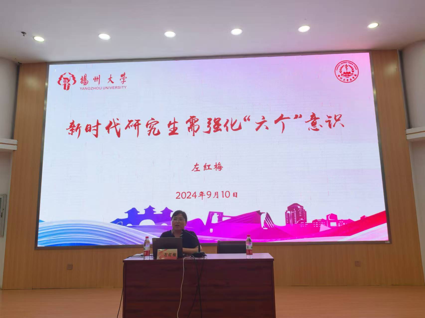 院党委副书记左红梅老师以《新时代研究生需强化的“六个”意识》为主题,提醒同学们首先要形成价值意识,要有自己的良好“三观”,找到自身价值;要有是非和规矩意识,明辨是非,维护社会秩序和个人行为规范;要有人际交往意识,处理好与同学、舍友的关系,处理好私人情感;要养成文明礼仪意识,做一个懂礼貌的青年;要有健康生活意识,养成良好的生活习惯;最后要有安全意识,自觉遵守校院管理规定,尤其进入实验室要严格遵循各项规章制度,保证实验室安全。