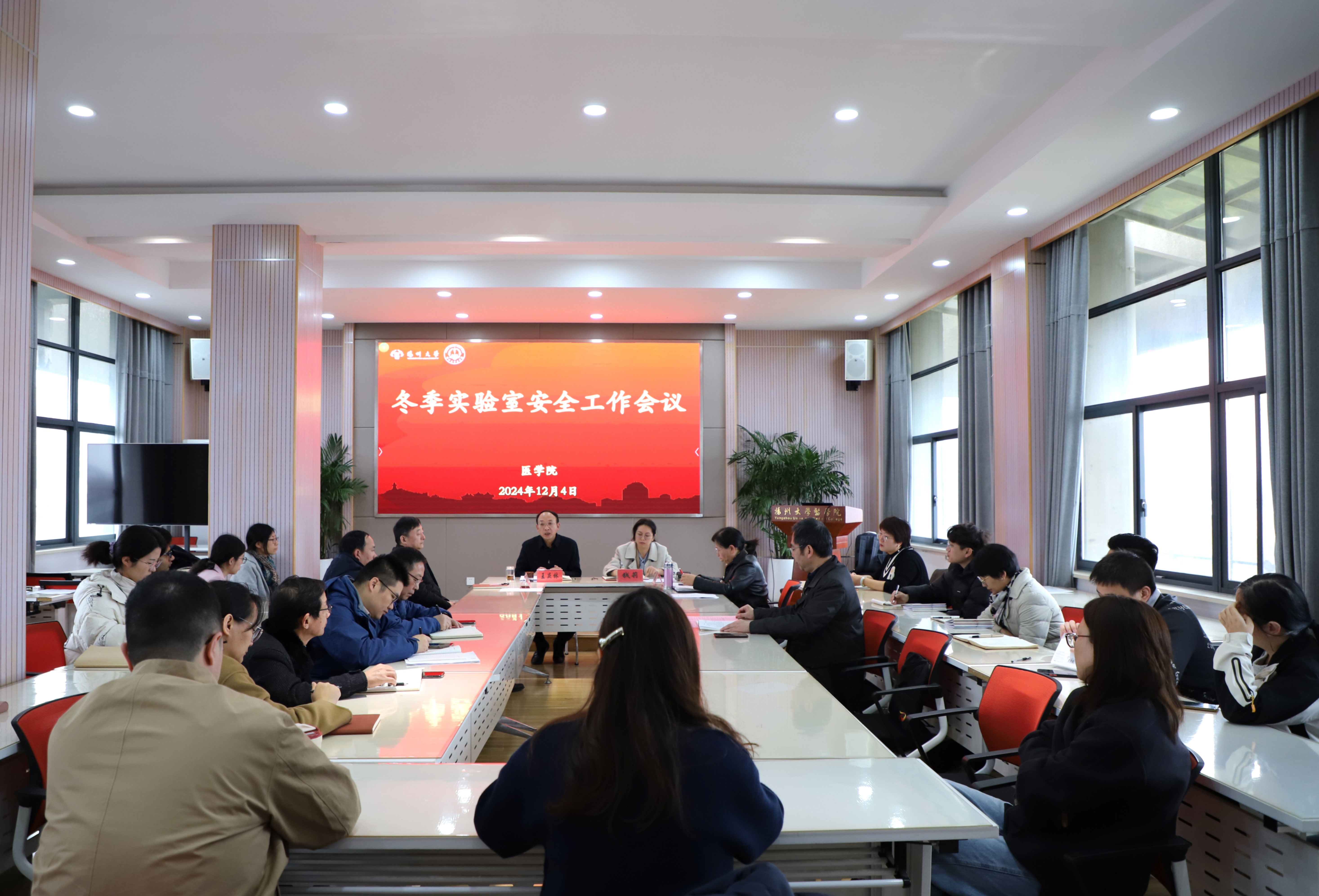 12月4日上午,学院在19号楼9楼报告厅召开冬季实验室安全工作会议,全体院、系领导、综合办主任、辅导员、实验室安全负责人等出席会议,院党委书记王庆林主持会议。