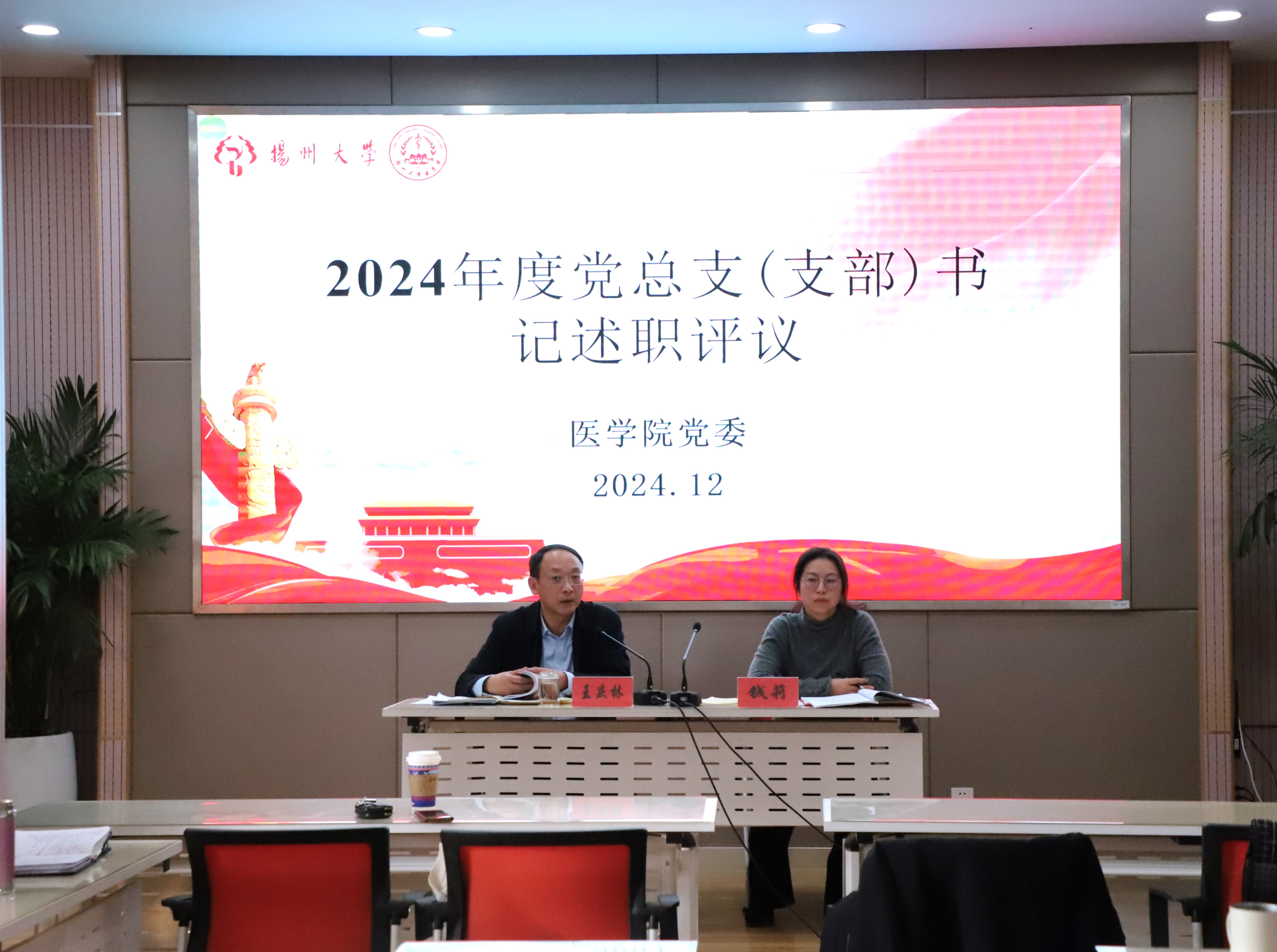 院党委书记王庆林作总结,他表示,2024年,学院各党总支、党支部坚持深入贯彻落实习近平新时代中国特色社会主义思想和习近平总书记重要指示批示精神,深入开展党纪学习教育,无论是党建还是中心工作都取得了新进展新成效。他指出,虽然成绩很多,但总支和支部工作也存在很多问题。在今后的工作中,各党总支和党支部书记要继续加强学习,一要准确把握党建工作要求,不断提高自身的党务工作能力;二要清醒认识发展的严峻形势,以“一融双高”为指引,充分发挥基层党组织战斗堡垒作用和党员先锋模范作用,真正实现以党建引领事业发展;三是要切实担负职责使命,为加快建设高水平研究型医学院做出更大的贡献。