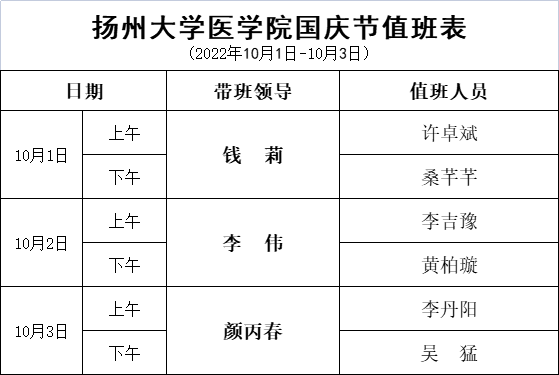 扬州大学医学院2022年国庆值班表